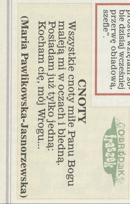 Archiwum nr 2833 (28/1999) 33/40 Podziel się Tytuł Cnoty Autor Maria Pawlikowska-Jasnorzewska Artykuł z numeru 2833 (2834/1999) Data wydania 10 października 1999 Tagi ogródek fraszek