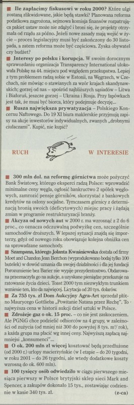Archiwum / Przekrój tygodnia nr 2837 (28/1999) 123470/123969 Podziel się Tytuł Ruch w interesie Rubryka Przekrój tygodnia Artykuł z numeru 2837 (2838/1999) Data wydania 7 listopada 1999