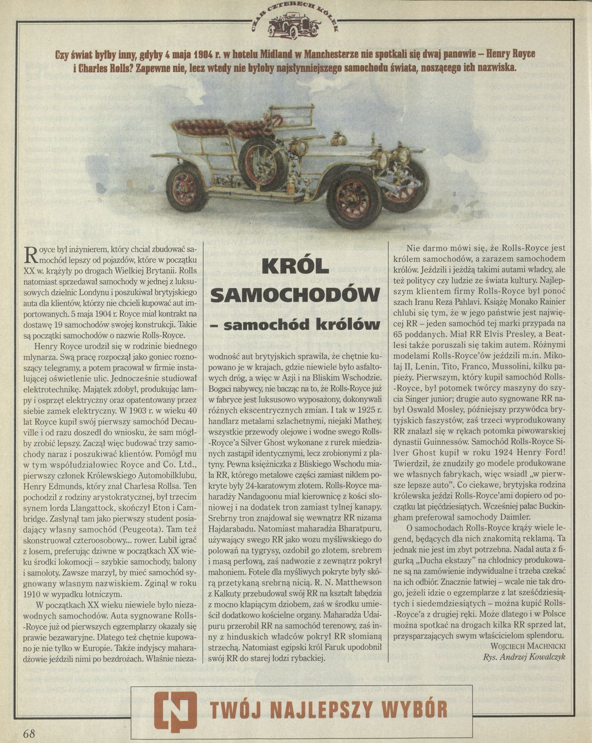Archiwum / Czar Twoich kółek nr 2791-92 (27-27/1998) 460/465 Podziel się Tytuł Król samochodów - samochód królów Autor Wojciech Machnicki Rubryka Czar Twoich kółek Artykuł z numeru 2791-92 (2792/1998) Data wydania 20 grudnia 1998 Tagi Rolls-Royce