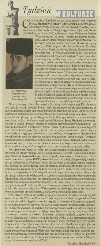 Archiwum / Tydzień w kulturze nr 2840 (28/1999) 19/19 Podziel się Tytuł Tydzień w kulturze Autor Marian Sienkiewicz Rubryka Tydzień w kulturze Artykuł z numeru 2840 (2841/1999) Data wydania 28 listopada 1999 Tagi Janusz Degler Jerzy Waldorff Witkacy