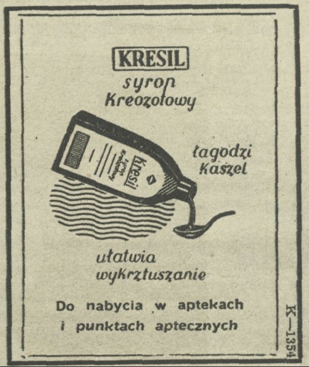 Archiwum / Reklamy nr 474 (19/1954) 106550/123969 Podziel się Tytuł Kresil Rubryka Reklamy Artykuł z numeru 474 (19/1954) Data wydania 9 maja 1954 Tagi syrop kreozolowy apteka