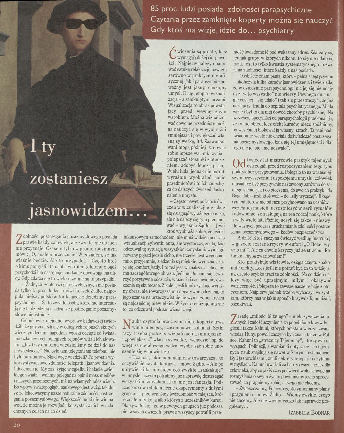 Archiwum / Społeczeństwo nr 2840 (28/1999) 7515/7522 Podziel się Tytuł I ty zostaniesz jasnowidzem... Autor Izabella Bodnar Kategoria Społeczeństwo Artykuł z numeru 2840 (2841/1999) Data wydania 28 listopada 1999