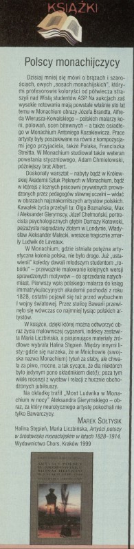 Archiwum / Książki nr 2840 (28/1999) 06/390 Podziel się Tytuł Książki. Polscy monachijczycy Autor Marek Sołtysik Rubryka Książki Artykuł z numeru 2840 (2841/1999) Data wydania 28 listopada 1999 Tagi Halina Stępień Maria Liczbińska: Artyści polscy