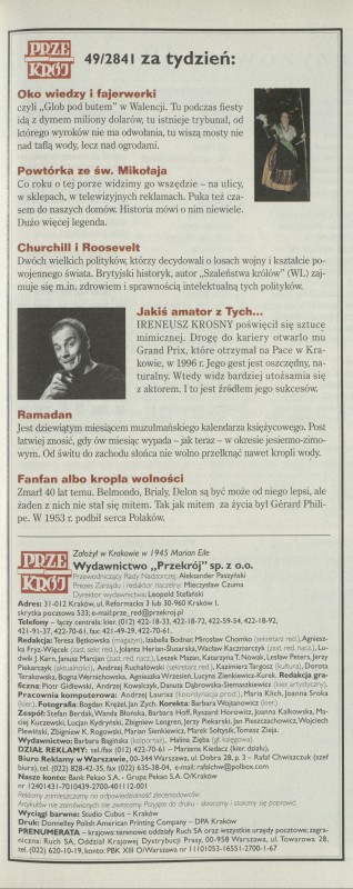 Archiwum / Różności nr 2840 (28/1999) 162/171 Podziel się Tytuł [Przekrój za tydzień i Stopka wydawnicza] Kategoria Różności Artykuł z numeru 2840 (2841/1999) Data wydania 28 listopada 1999