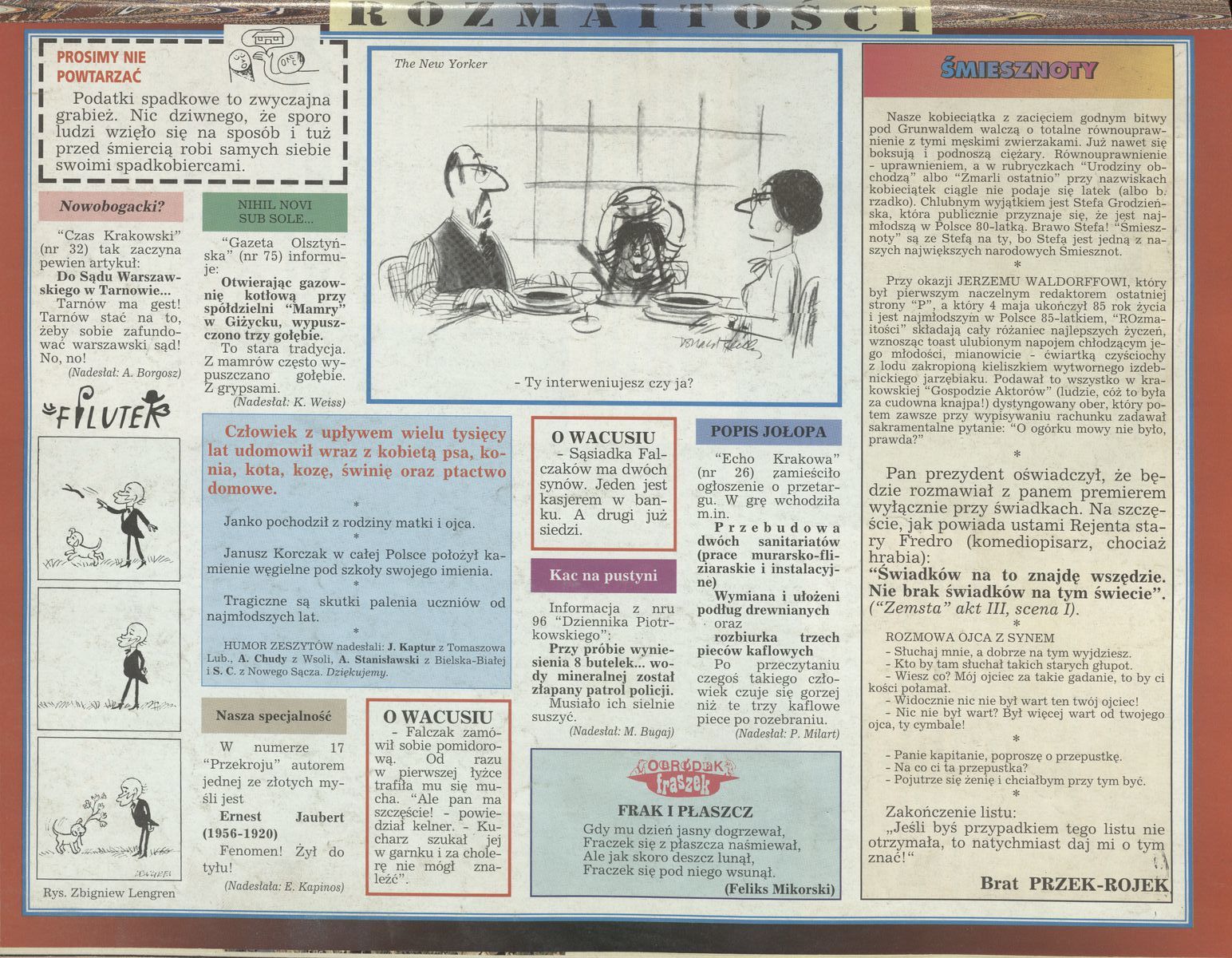 Archiwum / Rozmaitości nr 2605 (22/1995) 110191/123969 Podziel się Tytuł Rozmaitości Rubryka Rozmaitości Artykuł z numeru 2605 (22/1995) Data wydania 28 maja 1995