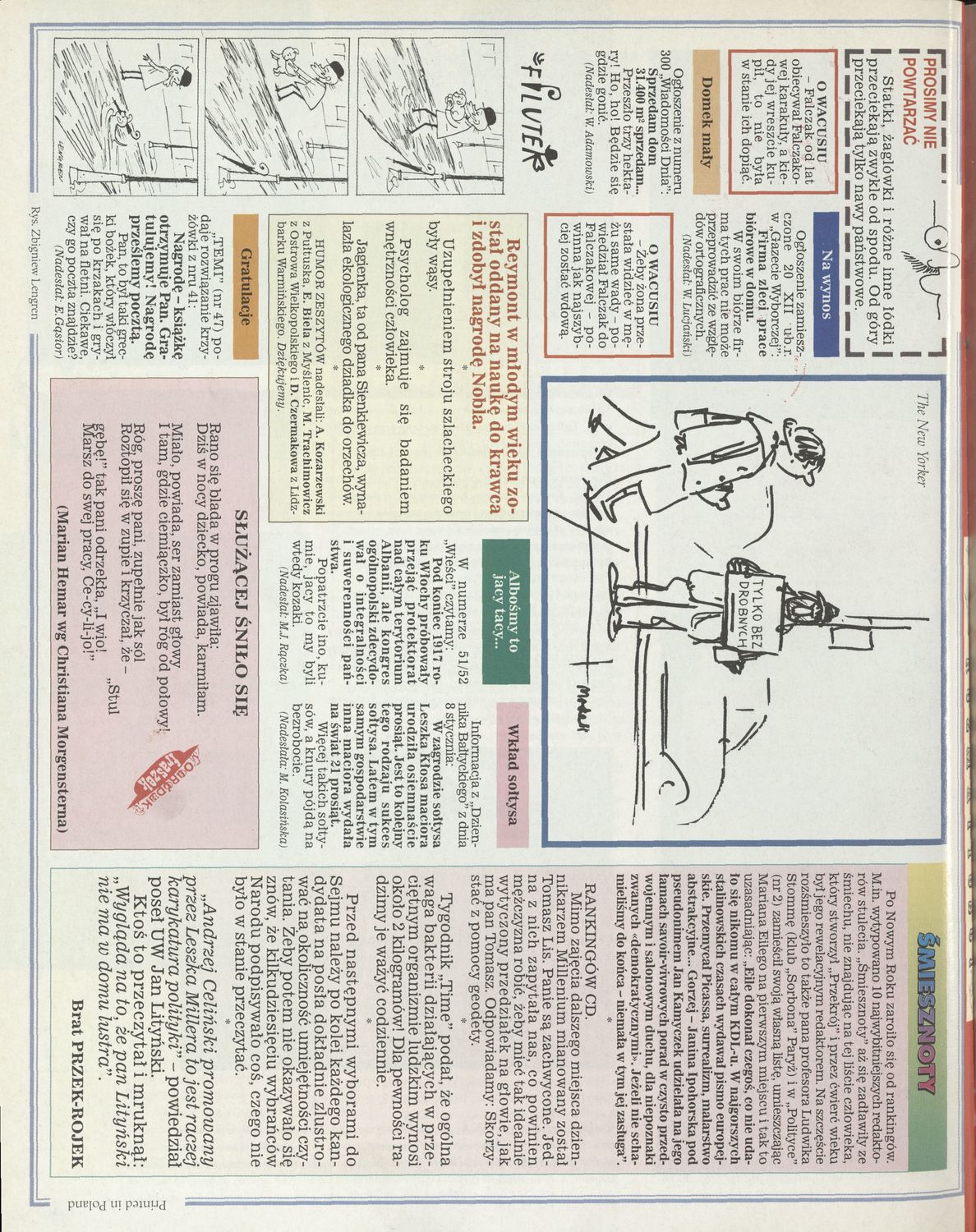 Archiwum / Rozmaitości nr 2850 (28/2000) 06/53 Podziel się Tytuł Rozmaitości Rubryka Rozmaitości Artykuł z numeru 2850 (2851/2000) Data wydania 6 lutego 2000