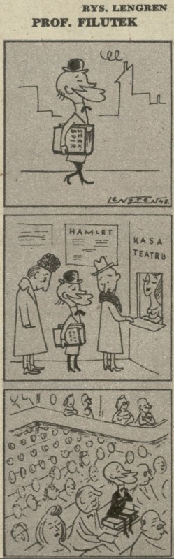 Archiwum / Profesor Filutek nr 149 (07/1948) 32/139 Podziel się Tytuł Prof. Filutek Autor Zbigniew Lengren Rubryka Profesor Filutek Artykuł z numeru 149 (7/1948) Data wydania 15 lutego 1948 Tagi żart rysunkowy teatr