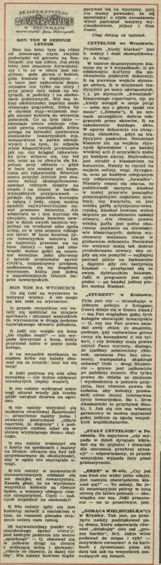 Archiwum / Demokratyczny savoir-vivre nr 160 (18/1948) 06/28 Podziel się Tytuł Bon- ton w sezonie letnim Autor Jan Kamyczek Rubryka Demokratyczny savoir-vivre Artykuł z numeru 160 (18/1948) Data wydania 2 maja 1948