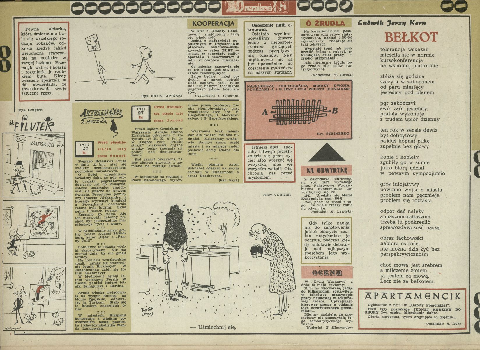 Archiwum / Rozmaitości nr 894 (21/1962) 37363/123969 Podziel się Tytuł Rozmaitości Rubryka Rozmaitości Artykuł z numeru 894 (21/1962) Data wydania 27 maja 1962