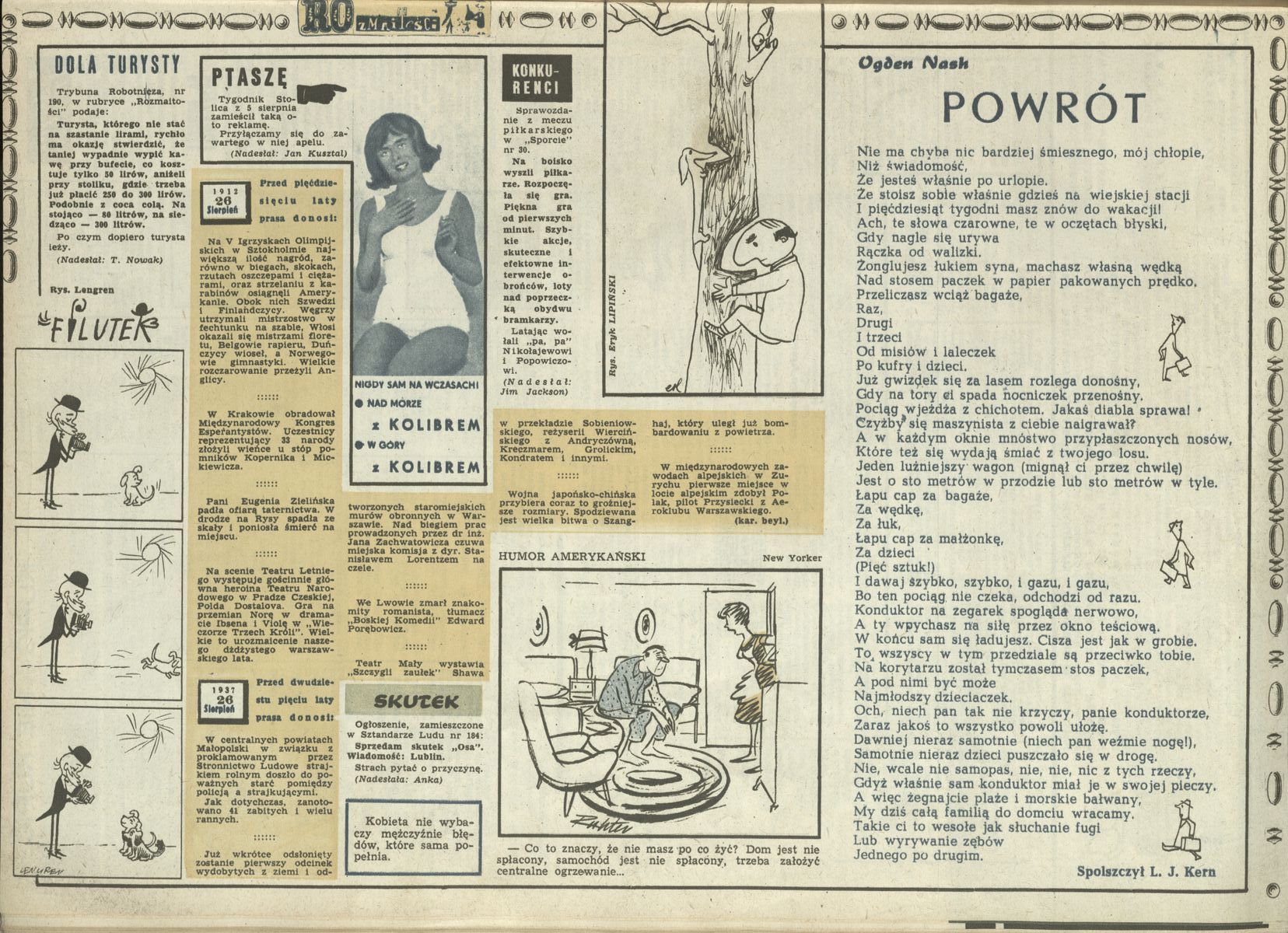Archiwum / Rozmaitości nr 907 (34/1962) 344/2078 Podziel się Tytuł Rozmaitości Rubryka Rozmaitości Artykuł z numeru 907 (34/1962) Data wydania 26 sierpnia 1962