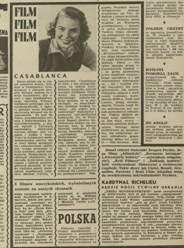 Archiwum / Film nr 167 (25/1948) 4995/123969 Podziel się Tytuł Film Autor Koź. Rubryka Film Artykuł z numeru 167 (25/1948) Data wydania 20 czerwca 1948 Tagi kino Hollywood Casablanca" Humprey Bogart
