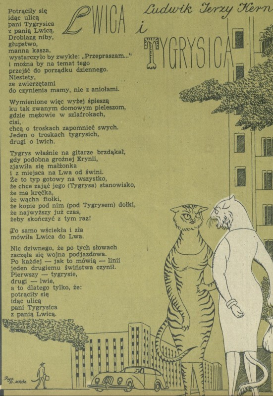 Archiwum / Rozmaitości [old] nr 459 (04/1954) 16748/123969 Podziel się Tytuł Lwica i Tygrysica Autor Ludwik Jerzy Kern Rubryka Rozmaitości [old] Artykuł z numeru 459 (4/1954) Data wydania 24 stycznia 1954