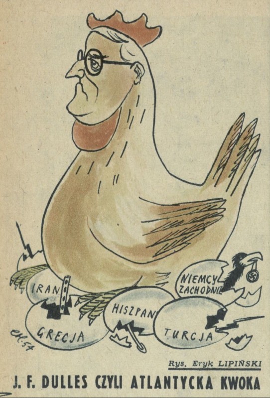 Archiwum / Rozmaitości [old] nr 472 (17/1954) 107/181 Podziel się Tytuł Dulles czyli atlantycka kwoka Autor Eryk Lipiński Rubryka Rozmaitości [old] Artykuł z numeru 472 (17/1954) Data wydania 25 kwietnia 1954 Tagi propaganda karykatura satyra polityka Bonn