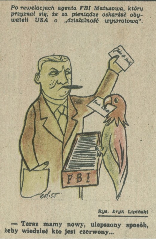 Archiwum / Rozmaitości [old] nr 516 (09/1955) 09/29 Podziel się Tytuł Kto jest czerwony Autor Eryk Lipiński Rubryka Rozmaitości [old] Artykuł z numeru 516 (9/1955) Data wydania 27 lutego 1955 Tagi satyra polityka propaganda karykatura USA FBI Matusow