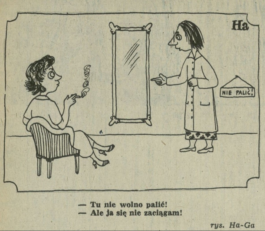 Archiwum / Rozmaitości [old] nr 600 (41/1956) 23401/123969 Podziel się Tytuł Nie palić! Autor Hanna Gosławska-Lipińska Rubryka Rozmaitości [old] Artykuł z numeru 600 (41/1956) Data wydania 7 października 1956 Tagi żart rysunkowy Ha-Ga papieros