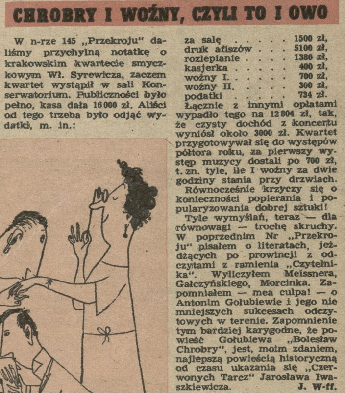 Archiwum / Rozmaitości [old] nr 147 (05/1948) 10/48 Podziel się Tytuł Chrobry i woźny, czyli to i owo Autor Jerzy Waldorff Rubryka Rozmaitości [old] Artykuł z numeru 147 (5/1948) Data wydania 1 lutego 1948