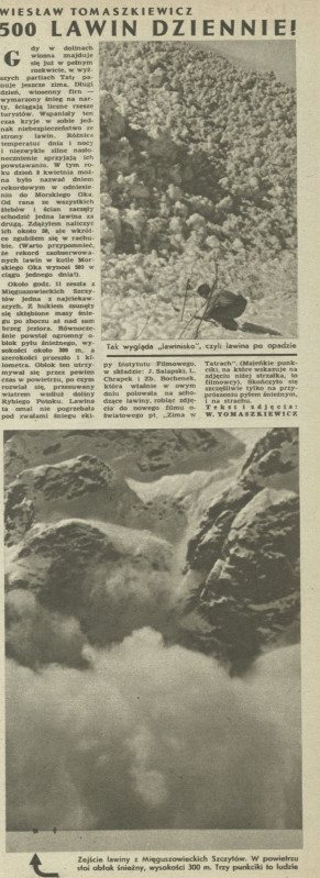 Archiwum / Relacja nr 161 (19/1948) 103/111 Podziel się Tytuł 500 lawin dziennie! Autor Wiesław Tomaszkiewicz Kategoria Relacja Artykuł z numeru 161 (19/1948) Data wydania 9 maja 1948 Tagi narciarstwo Tatry lawina kataklizm