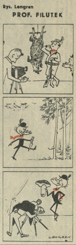 Archiwum / Profesor Filutek nr 340 (42/1951) 11309/123969 Podziel się Tytuł Prof. Filutek Autor Zbigniew Lengren Rubryka Profesor Filutek Artykuł z numeru 340 (42/1951) Data wydania 14 października 1951 Tagi żart rysunkowy grzyb