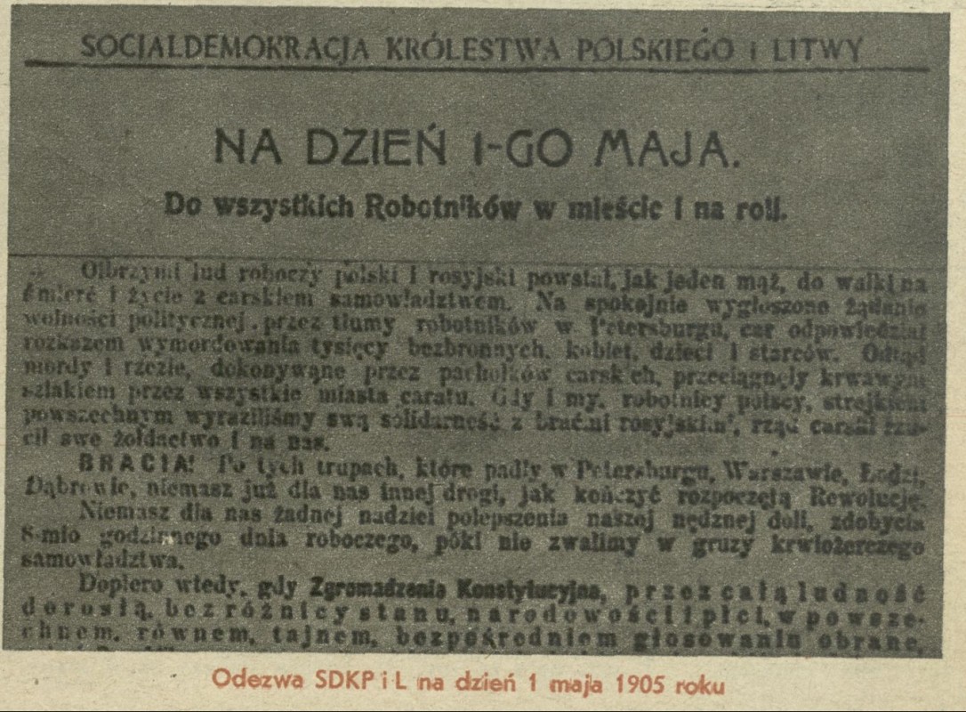 Archiwum / Fotografia nr 289 (43/1950) 9251/123969 Podziel się Tytuł Odezwa Socjaldemokracji Królestwa Polskiego i Litwy na dzień 1 maja 1905 roku Kategoria Fotografia Artykuł z numeru 289 (43/1950) Data wydania 22 października 1950