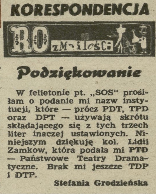 Archiwum / Rozmaitości [old] nr 325 (27/1951) 10664/123969 Podziel się Tytuł Korespondencja Rozmaitości Autor Stefania Grodzieńska Rubryka Rozmaitości [old] Artykuł z numeru 325 (27/1951) Data wydania 1 lipca 1951