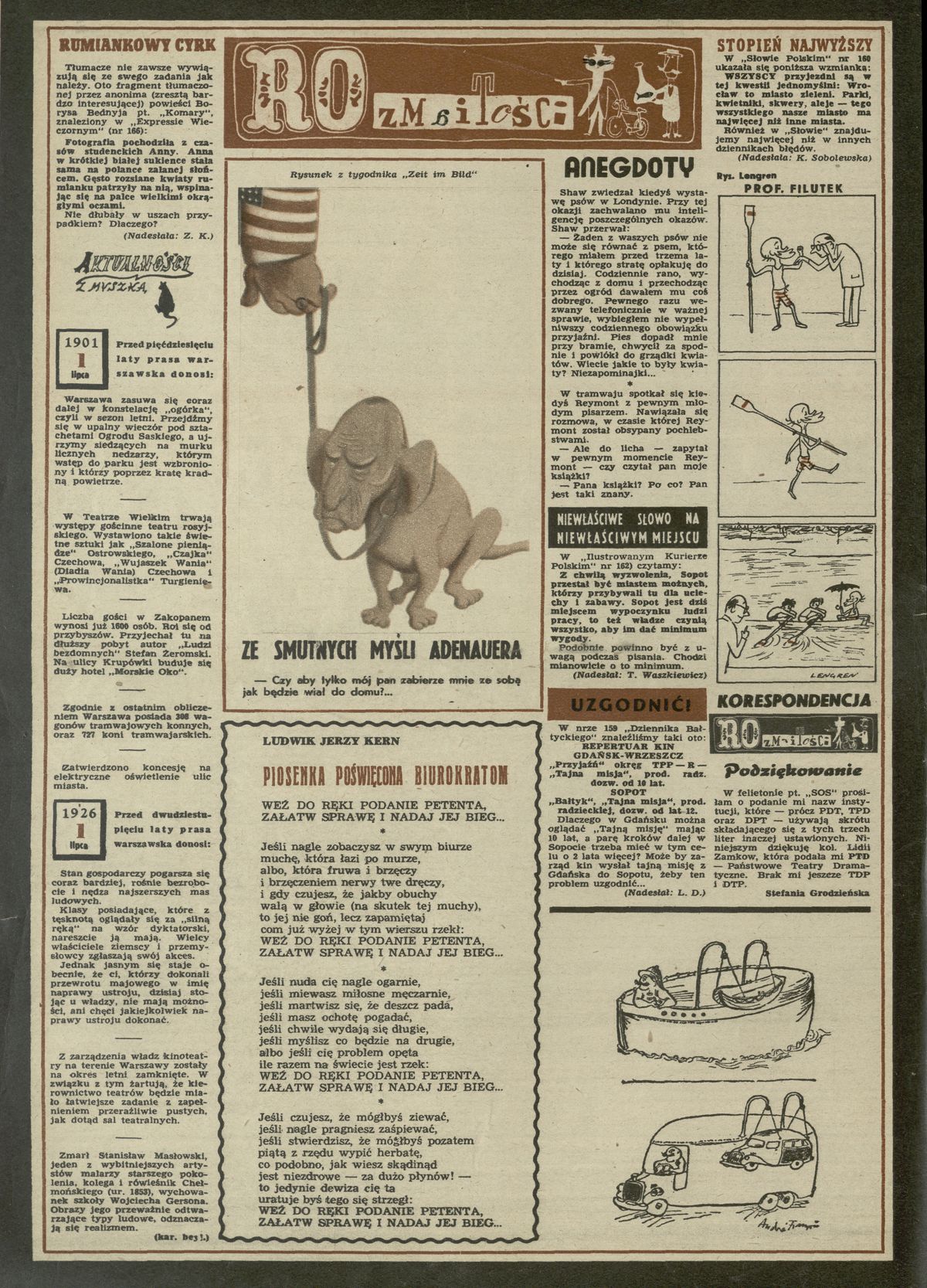 Archiwum / Rozmaitości [old] nr 325 (27/1951) 263/511 Podziel się Tytuł Rozmaitości Rubryka Rozmaitości [old] Artykuł z numeru 325 (27/1951) Data wydania 1 lipca 1951