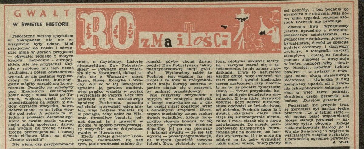 Archiwum / Rozmaitości [old] nr 181 (39/1948) 155/217 Podziel się Tytuł Gwałt w świetle historii Autor J. W-ff Rubryka Rozmaitości [old] Artykuł z numeru 181 (39/1948) Data wydania 26 września 1948 Tagi Stefan Żeromski