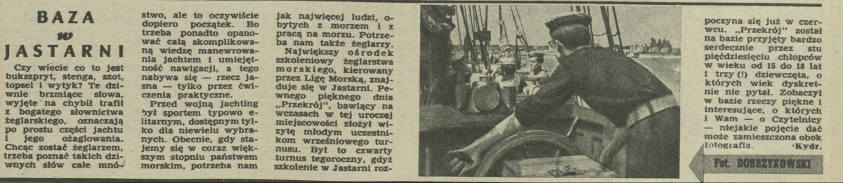 Archiwum / Sport nr 340 (42/1951) 135/160 Podziel się Tytuł Baza w Jastarni Autor Marian Dobrzykowski Rubryka Sport Artykuł z numeru 340 (42/1951) Data wydania 14 października 1951 Tagi żegluga