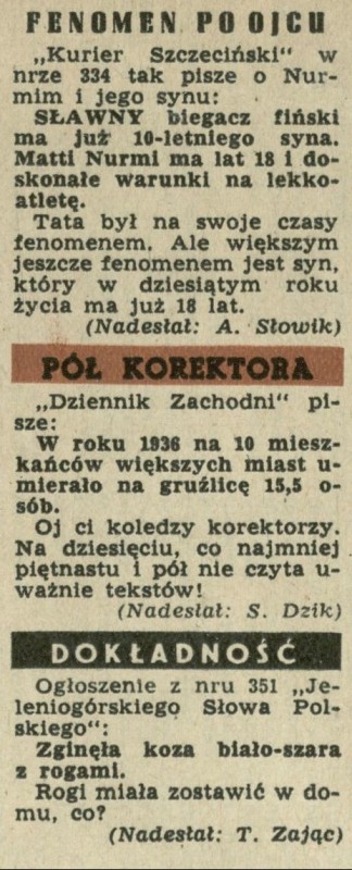 Archiwum / Rozmaitości [old] nr 354 (03/1952) 119/2505 Podziel się Tytuł Fenomen po ojcu / Pół korektora / Dokładnność Rubryka Rozmaitości [old] Artykuł z numeru 354 (3/1952) Data wydania 20 stycznia 1952
