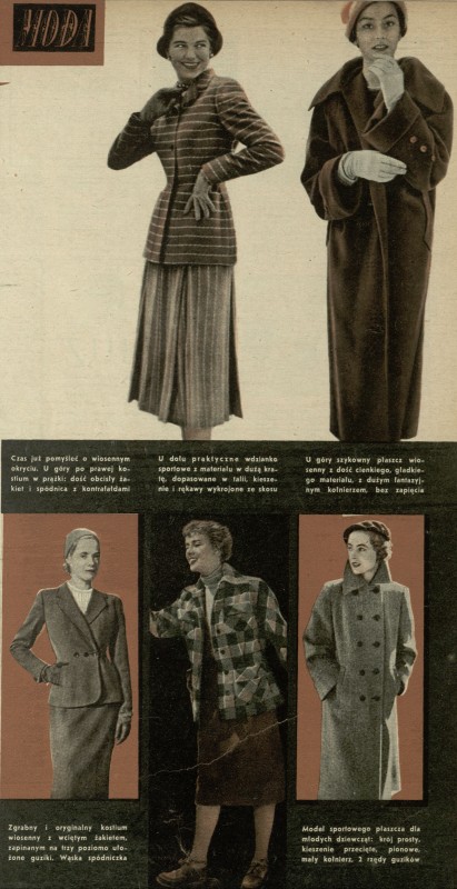 Archiwum / Moda nr 359 (08/1952) 161/670 Podziel się Tytuł Moda Rubryka Moda Artykuł z numeru 359 (8/1952) Data wydania 24 lutego 1952 Tagi moda damska moda wiosenna płaszcze
