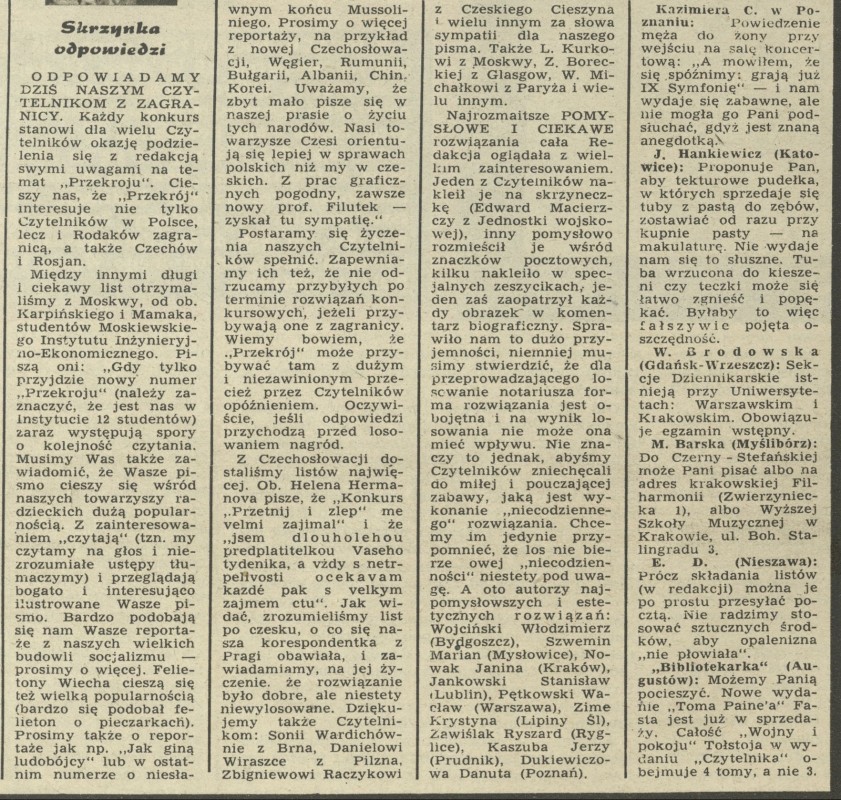 Archiwum / Skrzynka odpowiedzi nr 371 (20/1952) 08/259 Podziel się Tytuł Skrzynka odpowiedzi Rubryka Skrzynka odpowiedzi Artykuł z numeru 371 (20/1952) Data wydania 18 maja 1952