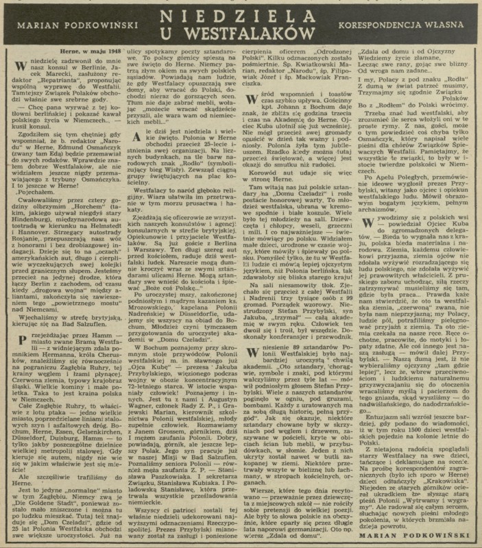 Archiwum / korespondencja własna "Przekroju" nr 165 (23/1948) 19/33 Podziel się Tytuł Niedziela u Westfalków Autor Marian Podkowiński Rubryka korespondencja własna "Przekroju" Artykuł z numeru 165 (23/1948) Data wydania 6 czerwca 1948 Tagi Niemcy Herne