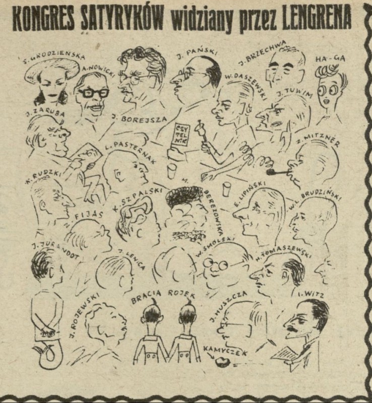 Archiwum / Historyjki obrazkowe nr 190 (48/1948) 5795/123969 Podziel się Tytuł Kongres satyryków widziany przez Lengrena Autor Zbigniew Lengren Kategoria Historyjki obrazkowe Artykuł z numeru 190 (48/1948) Data wydania 28 listopada 1948