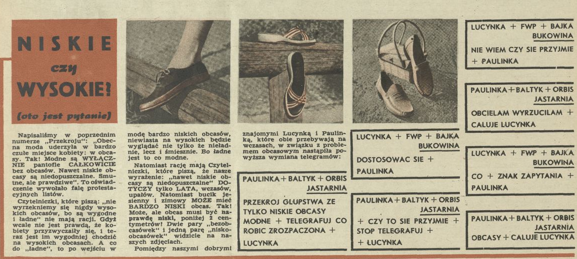Archiwum / Dziś Lucynka i Paulinka nr 386 (35/1952) 214/904 Podziel się Tytuł Niskie czy wysokie? (oto jest pytanie) Autor Lucynka i Paulinka Rubryka Dziś Lucynka i Paulinka Artykuł z numeru 386 (35/1952) Data wydania 31 sierpnia 1952 Tagi moda damska buty obcasy moda