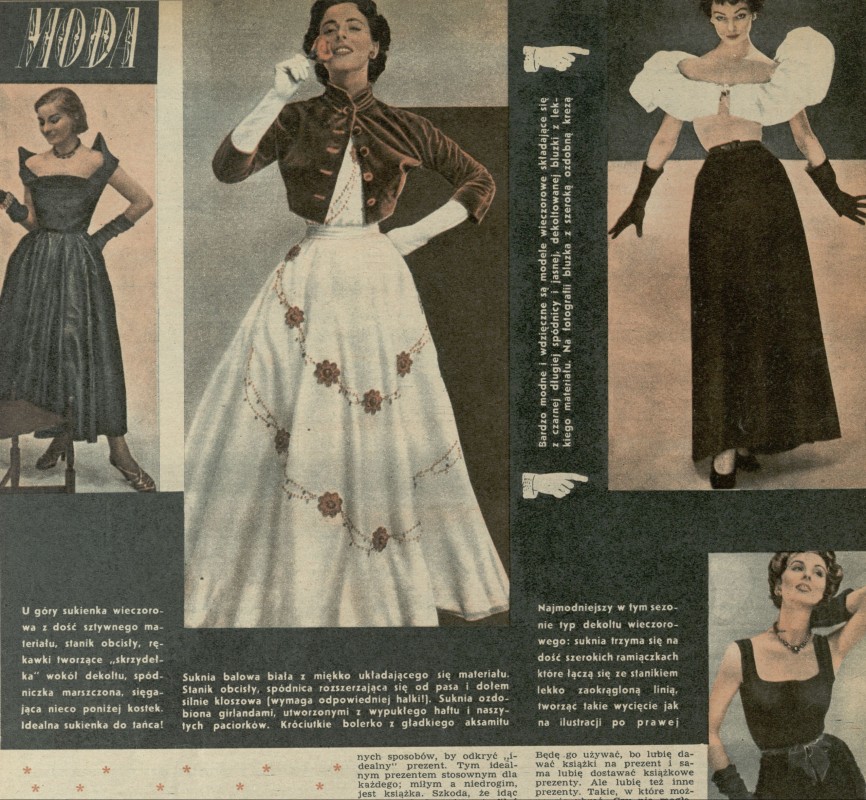 Archiwum / Moda nr 402-3 (51-52/1952) 400/586 Podziel się Tytuł Moda Rubryka Moda Artykuł z numeru 402-3 (51/1952) Data wydania 1 grudnia 1952 Tagi moda damska moda wieczorowa suknie sukienki