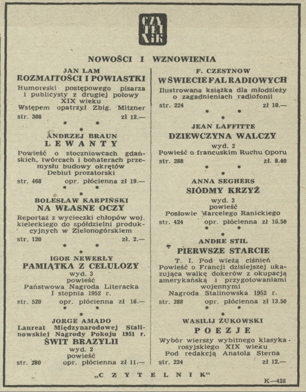 Archiwum / Reklamy nr 413 (10/1953) 03/60 Podziel się Tytuł „Czytelnik” - nowości i wznowienia Rubryka Reklamy Artykuł z numeru 413 (10/1953) Data wydania 8 marca 1953 Tagi książki