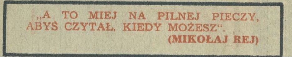 Archiwum / Rozmaitości [old] nr 423 (20/1953) 03/74 Podziel się Tytuł Abyś czytał... Autor Mikołaj Rej Rubryka Rozmaitości [old] Artykuł z numeru 423 (20/1953) Data wydania 14 maja 1953 Tagi cytat myśl sentencja