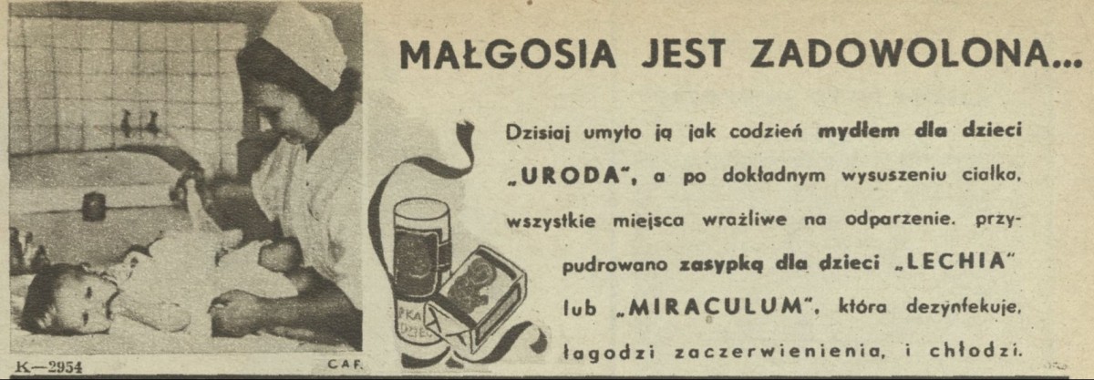 Archiwum / Reklamy nr 448 (45/1953) 167/792 Podziel się Tytuł Małgosia jest zadowolona... Autor CAF Rubryka Reklamy Artykuł z numeru 448 (45/1953) Data wydania 8 listopada 1953 Tagi zasypka dla dzieci "Lechia" "Miraculum" odparzenia mysło dla dzieci "Uroda"