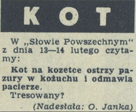 Archiwum / Rozmaitości [old] nr 465 (10/1954) 120/645 Podziel się Tytuł Kot Rubryka Rozmaitości [old] Artykuł z numeru 465 (10/1954) Data wydania 7 marca 1954