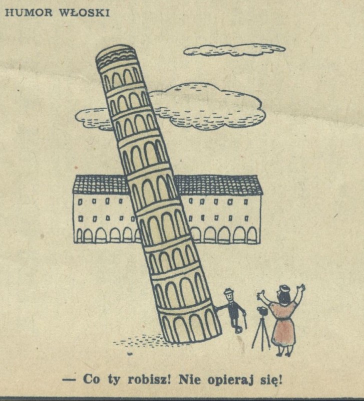 Archiwum / Rozmaitości [old] nr 466 (11/1954) 3/8 Podziel się Tytuł Krzywa Wieża w Pizie Rubryka Rozmaitości [old] Artykuł z numeru 466 (11/1954) Data wydania 14 marca 1954 Tagi żart rysunkowy humor włoski