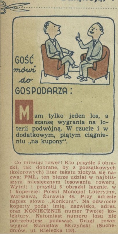 Archiwum / Konkurs nr 466 (11/1954) 17105/123969 Podziel się Tytuł PML Rubryka Konkurs Artykuł z numeru 466 (11/1954) Data wydania 14 marca 1954 Tagi Polski Monopol Loteryjny