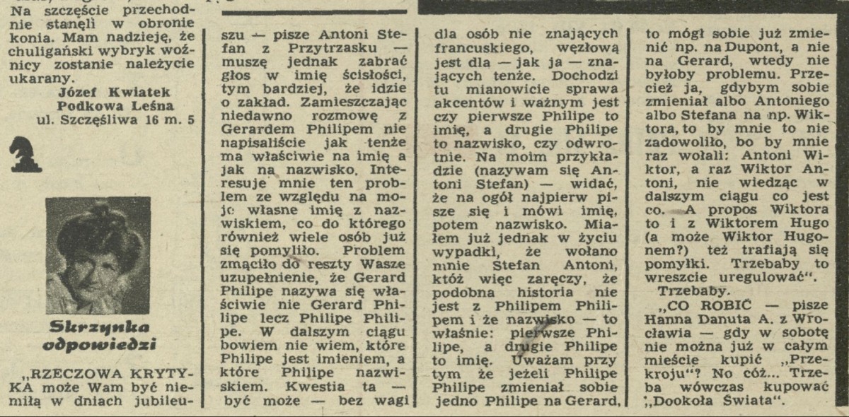 Archiwum / Skrzynka odpowiedzi nr 500 (45/1954) 18769/123969 Podziel się Tytuł Skrzynka odpowiedzi Rubryka Skrzynka odpowiedzi Artykuł z numeru 500 (45/1954) Data wydania 7 listopada 1954