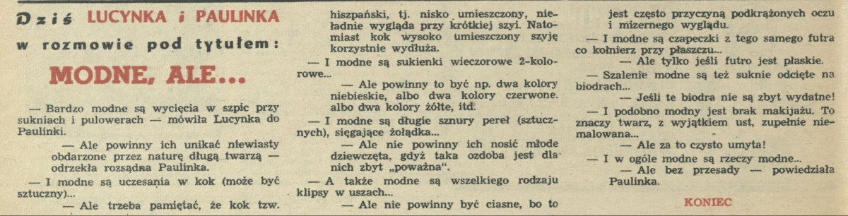Archiwum / Dziś Lucynka i Paulinka nr 505 (50/1954) 19056/123969 Podziel się Tytuł Modne, ale... Autor Lucynka i Paulinka Rubryka Dziś Lucynka i Paulinka Artykuł z numeru 505 (50/1954) Data wydania 5 grudnia 1954 Tagi porady ubranie strój