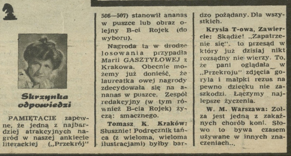 Archiwum / Skrzynka odpowiedzi nr 519 (12/1955) 104301/123969 Podziel się Tytuł Skrzynka odpowiedzi Rubryka Skrzynka odpowiedzi Artykuł z numeru 519 (12/1955) Data wydania 20 marca 1955