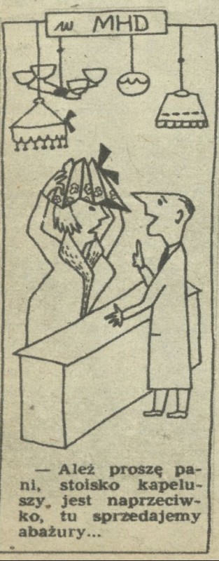 Archiwum / Historyjki obrazkowe nr 520 (13/1955) 19642/123969 Podziel się Tytuł W MHD Autor Marian Eile Kategoria Historyjki obrazkowe Artykuł z numeru 520 (13/1955) Data wydania 17 marca 1955 Tagi żart rysunkowy kapelusz żyrandol lampa