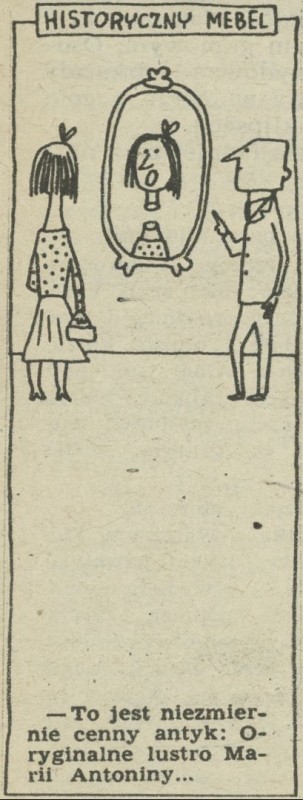 Archiwum / Historyjki obrazkowe nr 544 (37/1955) 28/73 Podziel się Tytuł Historyczny mebel Autor Marian Eile Kategoria Historyjki obrazkowe Artykuł z numeru 544 (37/1955) Data wydania 11 września 1955 Tagi żart rysunkowy antyk lustro Maria Antonina