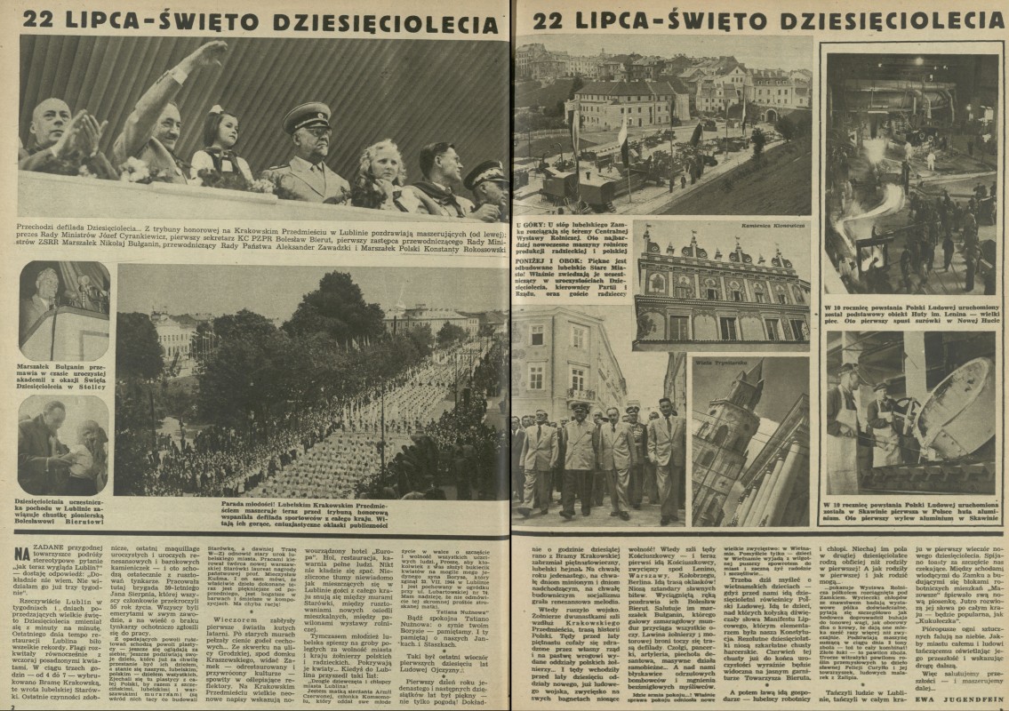 Archiwum / Fotoreportaż nr 486 (31/1954) 27/79 Podziel się Tytuł 22 lipca - Święto Dziesięciolecia Autor Ewa Jugendfein Kategoria Fotoreportaż Artykuł z numeru 486 (31/1954) Data wydania 1 sierpnia 1954 Tagi Cyrankiewicz PZPR Bierut Lublin PRL Polska Ludowa