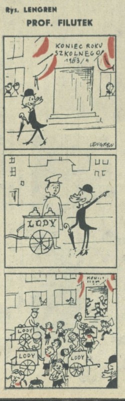 Archiwum / Profesor Filutek nr 481 (26/1954) 1/2 Podziel się Tytuł Prof. Filutek Autor Zbigniew Lengren Rubryka Profesor Filutek Artykuł z numeru 481 (26/1954) Data wydania 27 czerwca 1954 Tagi żart rysunkowy lody