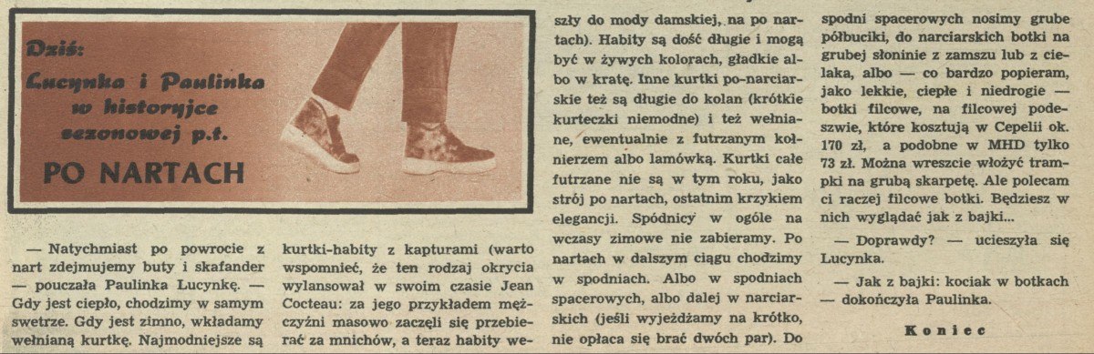 Archiwum / Dziś Lucynka i Paulinka nr 564 (05/1956) 38/42 Podziel się Tytuł Po nartach Autor Lucynka i Paulinka Rubryka Dziś Lucynka i Paulinka Artykuł z numeru 564 (5/1956) Data wydania 29 stycznia 1956