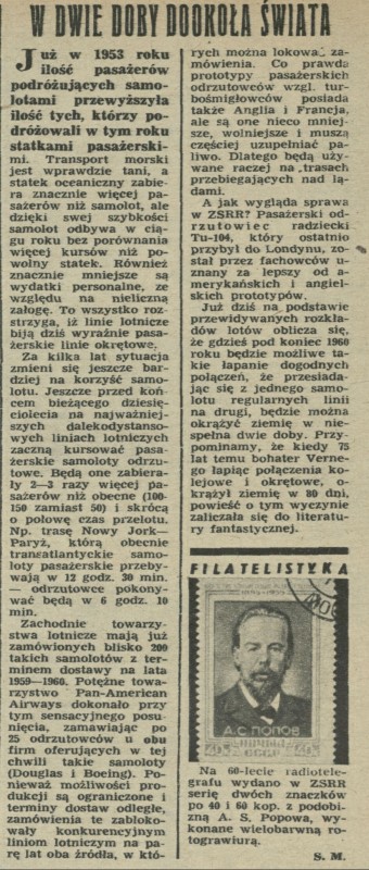 Archiwum / Różności nr 573 (14/1956) 161/739 Podziel się Tytuł W dwie doby dookoła świata Kategoria Różności Artykuł z numeru 573 (14/1956) Data wydania 1 kwietnia 1956 Tagi transport podróż