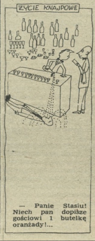Archiwum / Historyjki obrazkowe nr 577 (18/1956) 45/122 Podziel się Tytuł Życie knajpowe Autor Marian Eile Kategoria Historyjki obrazkowe Artykuł z numeru 577 (18/1956) Data wydania 1 maja 1956 Tagi żart rysunkowy oranżada bar